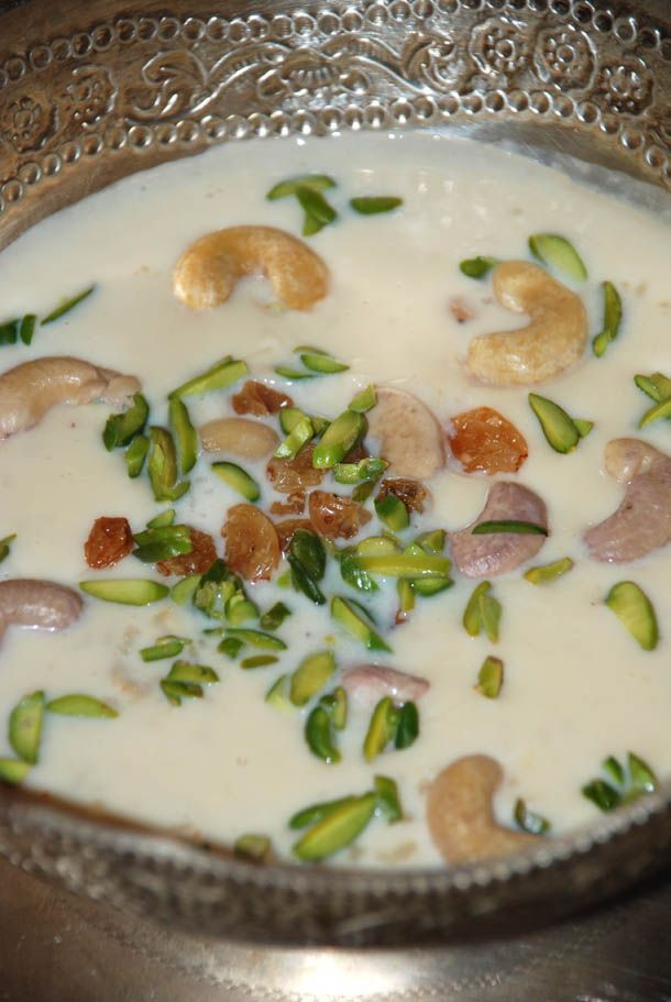 – Garnish with Pistachios, raising, Cashew Nuts. Serve it cold. However, some prefer to eat this Payesh smoking hot, just after it has been taken off the fire!