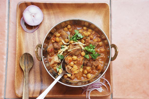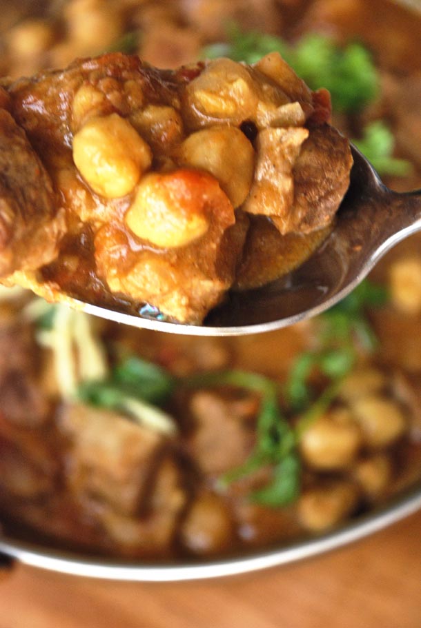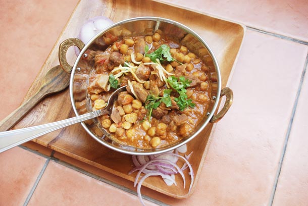 Preparation time – 1 hr 45 minutes approximately (boiling the chickpeas – 45 minutes; preparation – 10 minutes; cooking – 1 hour)