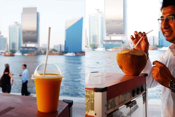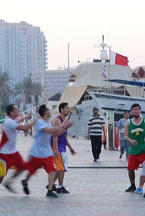 Where will you park your car? Follow the signs directing you to the Ruler’s Court just as you come down from Makhtoum Bridge on the Bur Dubai side or if you are driving into Bur Dubai along Oudh Mehta Road. Take the first exit which takes you to Al Seef RTA Water Station. Park here along the edge of the water, watch the traditional Dhows and the modern yachts jostle for anchoring space. Watch the Iranian Dhows lining the Deira side of Dubai Creek. Watch the evening walkers walking pass you by – while you watch adults and children play basket ball in the make-shift net hanging from a port-a-cabin.