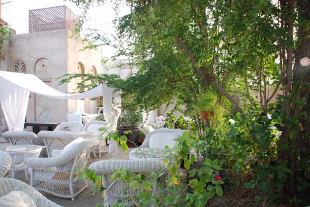 This is my favourite joint to cool down. When you enter the courtyard surrounded by potted plants and white canopy shaded sitting arrangements or perch yourself down on the white wickers – please carry all the time in the world! You’ll get sandwiches, pastas or an occasional lunch grab and an extensive assortment of fresh juices, teas and beautifully served Arabic coffee.