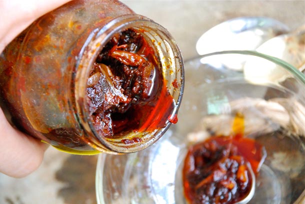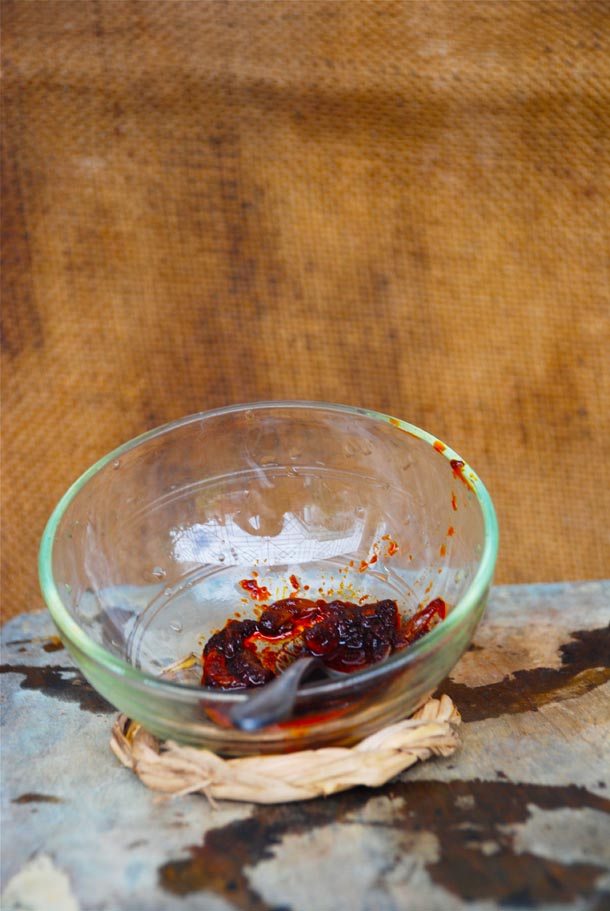 * Roast Red Chillies in a heated wok and continuously stir it to prevent the Chillies from burning. When the colour of the Chillies turn deep brown, take them off the fire and grind them into powder in a dry grinder. Note: If you are not used to this, yes, you’ll cough a lot. So Beware!