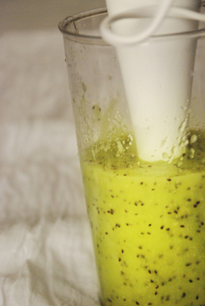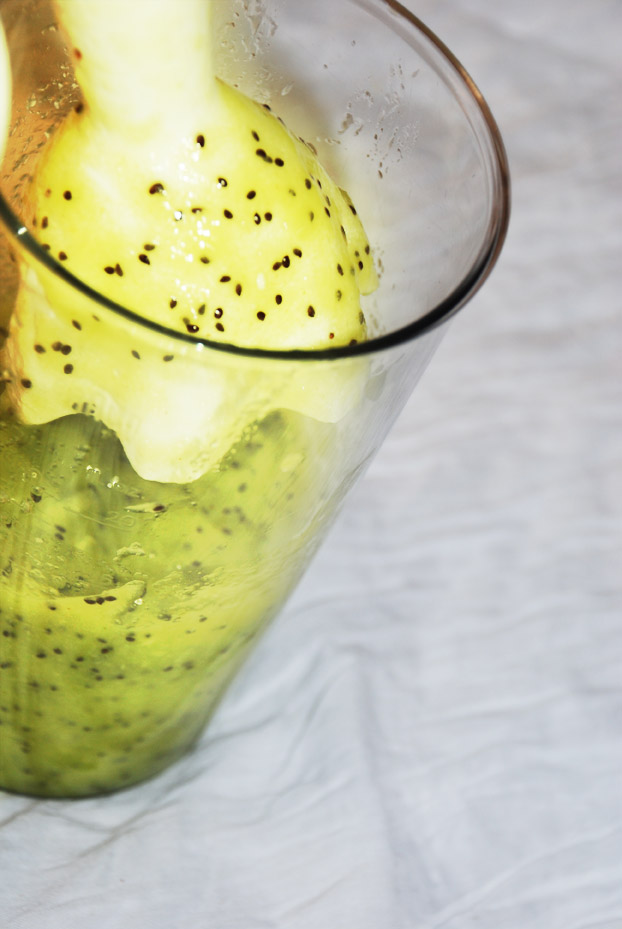 – Scoop out the flesh from the Kiwi halves and put purée it in a blender