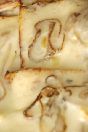 The following is a pictorial journey of the dish. I hope my camera gets the creamy textures and the tints correctly. Enjoy the journey…