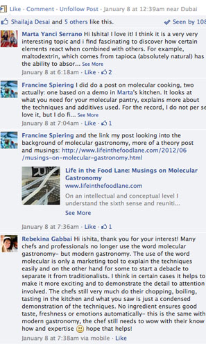 After attending the SOSA session (above), I was very intrigued and we had a very interesting debate and conversation amongst my foodie friends in Fooderati Arabia (a passionate and a serious group of UAE food bloggers) – some of them had attended the SOSA session with me. The discussion is as follows: