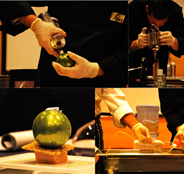 Rebecca of epicurUAEn: Many chefs and professionals no longer use the word molecular gastronomy, but modern gastronomy. The use of the word molecular is only a marketing tool to explain the techniques easily and on the other hand, for some to start a debacle to separate it from traditionalists. I think, in certain cases it helps to make it more exciting and to demonstrate the detail to attention involved. The chefs still very much do their chopping, boiling, tasting in the kitchen and what you saw is just a condensed demonstration of the techniques. No ingredient ensures good taste, freshness or emotions automatically – this is the same with modern gastronomy, the chef still needs to wow with their know how and expertise. Hope that helps!