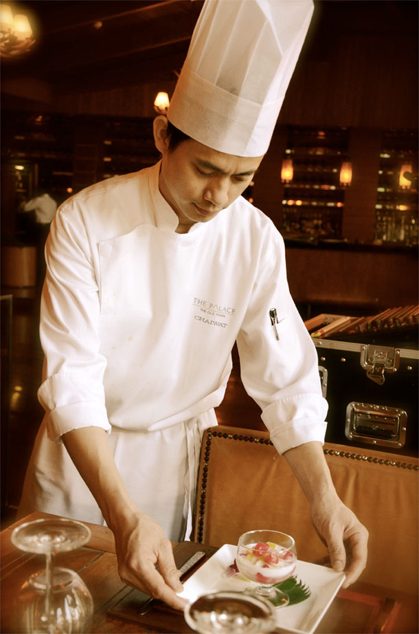 Taste of Dubai is one of the most awaited food events in the city. Bringing in an alfresco dining experience, the event features not only internationally renowned chefs (Gary Rhodes, Richard Sandoval, Giorgio Locatelli, Vineet Bhatia and The Food Network’s Jenny Morris and Reza Mahammad) but also 30 of Dubai’s top fine-dining restaurants. This is the first time that the The Palace Downtown is participating in the event. Naturally, Chef Chaiwat Kawikitpraphat, the Head Chef of Thiptara, had designed his Thai Menu with utmost care. As the Chef explained each of his culinary creations in detail, Sarah, the wise Sommelier in The Palace, poured the perfect Riesling or the Bordeaux that complemented each dish in the menu. I say wise, because I have already had the pleasure of having Sarah leading us on a fine evening of Wine tasting in the Asado Wine Club, a long time back.
