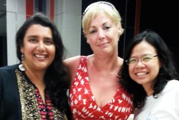 I was living exactly 814 kms away from Bangkok. Submerged mangrove forests, loud, really loud humming (or is it chirping?) of Crickets, the adventurous rides on the Hua Ton boats and the Skylabs as I held on precariously to my life and my seats, my tantalising first experience of Thai food (in Thailand) at the Ruen Mai restaurant, I was in a different world altogether – with a bunch of Emirati college students and without the Z-Sisters… spaced out completely except that I was still tweeting, posting on FB and instagramming LIVE, just like my normal urban self!!! Debbie (middle), who till now had just been a fellow Fooderati blogger and soon became more of a buddy than an accompanying hashtag on Twitter (#FoodieOnTour), and Rung (right) from the Tourism Authorities in Thailand, who I would pester continuously to write down the Thai name of the dishes that we were eating – these names would surely be popping up quite a lot in the next few posts. Do stay with me as I write on my amazing Thailand experiences. This is one trip that I have much more to write on than I had originally planned!
