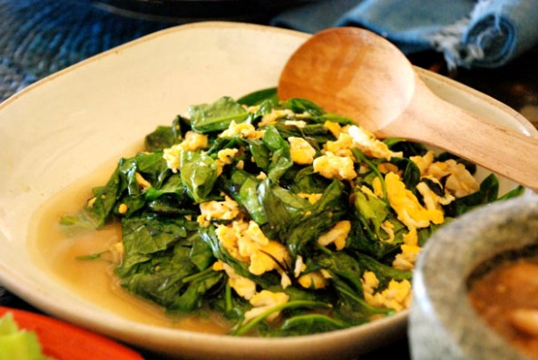 Pad Pak Mieng: Pak Mieng (above) is a slightly bitter regional leafy green from southern Asia. Stir fried with oyster sauce and eggs, this vegetarian dish tasted quite heavenly (the leafy fern reminds me of the Srilankan Kankun leaves or Baby Spinach). Often the Pak Mieng is topped with dried shrimp (Pak Miang Pad Gkoong) or smoke dried fish and crispy fried-dried onions. (more on Pak Mieng)