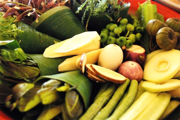 Fresh Vegetables and Shrimp dip: This was an interesting introduction to some of the vegetables that grow in the Krabi region. Served whole or slightly chopped, we were supposed to be munching on them and eat them fresh along with a really spicy dip made with Shrimp paste (above). The vegetables that were already known to me were – Basil leaves, Raddish, Cucumbers and Shallots while most of the vegetables were new to me – different types of fresh seaweed and many more. This dip was not the familiar Nam Pla, but had some other name which I seemed to have missed out noting down. I am wondering whether it was the Shrimp dip that made me eat more vegetables than I would normally eat!