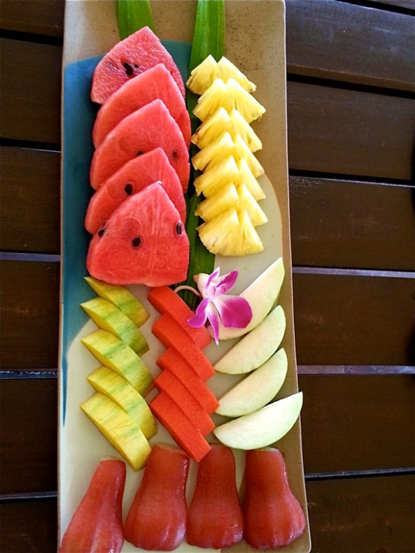 Surprisingly, the next few days that we spent in Thailand, our Desserts consisted of only fresh fruits – mostly Watermelons and Pineapples. Delicious, fresh, chilled and generous amounts of these sliced fruits. It was only in Ruen Mai that we tasted a few more fruits like red Papaya, Mangoes and Wood Apple. Papayas looking ravishing in red and tasting gorgeous too, I liked the Wood Apples too. Only Mangoes didn’t seem to arrive properly. Yes, I’ve taken to fashion adjectives, because the culinary adjectives have started falling short as I eat out in Thailand.