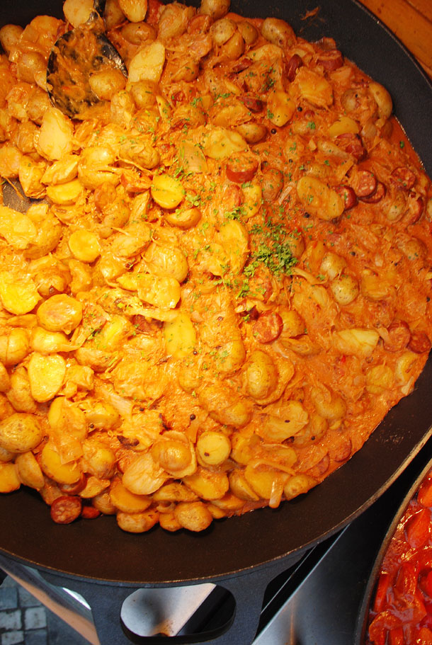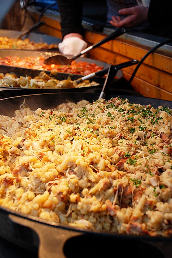 Look out for freshly cooked traditional Czech food sold by weight, served by the jovial Czech vendors at makeshift food stalls (above pictures) specially set up for Christmas and Easter around the Wenceslas Square. The variations of sausages and traditional Czech food served here are mindboggling – Paprikový tocenec or the Beef sausages, the Vinná klobása where sausages have been coiled up or the Grilovaný syr, the cheese patties and different dishes of potatoes or the Bramborové - boiled, roasted, mashed potatoes french fries and of course the famous Bramborové knedlíky or the potato dumplings. The star dish of all the potato frenzy must be the Czech Halousky - a smaller but insanely tastier version of gnoccis made with flour and mashed potatoes (the last image above). I am guaranteeing that it is here that you are bound to fall in love with a Bramborové or our very own Potato in its many Avatars. Or may be the Czech Halousky!