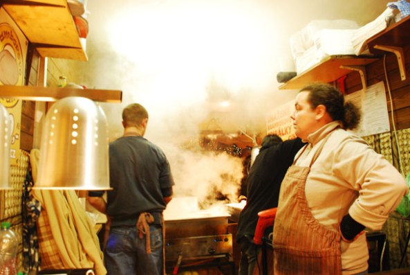 Since the day I arrived, I had already eyed a particular road stall and the vivacious lady behind the counter soon became my temporary adopted Czech Momma (the lady to the left in the picture above), eager to feed the hungry bystanders with her double XL dose of caramelised onions (above) over the mammoth sausage she handed over. Every time we passed her by, she invited me to join the long queue. Naturally, I did end up in her kiosk more than anywhere else. In return for such hard work, I did get to gorge on her delicious Sausages at various odd hours. Such was her magnetic charm, or was it the caramelized onions (I am yet to figure that out), that I ended up buying bottled mineral water at double the supermarket prices from her. Because, unlike Dubai, the supermarkets are not open 24x7, nor are there small neighborhood grocery guys who’ll come running to deliver small contingency needs from salt to water.