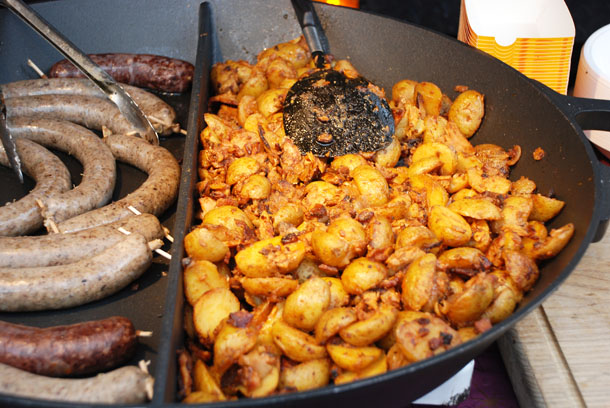 These (in)famous sausage stands do chip in long after the supermarkets and restaurants have closed down, feeding hungry tummies of the night-club-returning crowd. Famous or infamous, I realized that the sausages are the ones that attract the most attention, followed by the caramelized onions. And they hand snootily in their many avatars – dark meat, white meat and red meat; the Bavarian, Italian or Polish sausages – both spicy and non-spicy. Cupped up in between toasted or untoasted Chléb/Chleba or Rye and jutting out of the bread like a banana boat, these giant-sized Sausages with over generous amounts of caramelized onion smothered over these - and behold - a new love saga with foot-long Czech Sausages just about begins.