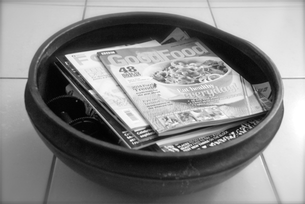 An enormous iron container belonging to my husband’s Thakuma (paternal grandma), which now holds all my food magazines and food cutouts