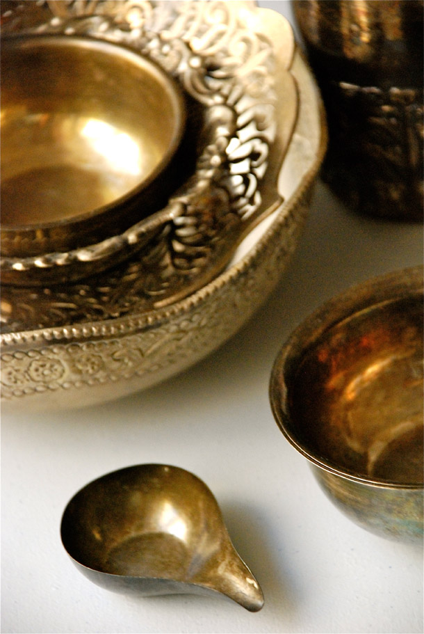 5. Beautiful post. I have inherited a rice serving spoon from my Mum-in-law and will get two things when I visit India next time from my Maa. A salt jar and a rice measuring cup made from Parachute coconut oil metal can. I have two gun metal glasses and two plates (knashar thala ar glass) which are my Dida’s, given to my Maa during her wedding. They are treasures. Few sondesh molds made by my FIL’s grandmother. 🙂 Your post made me nostalgic Ishita. Loved it.