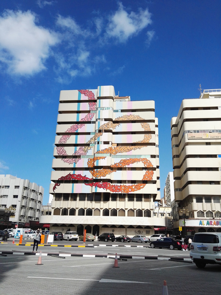 A highrise with calligraphy in Sharjah