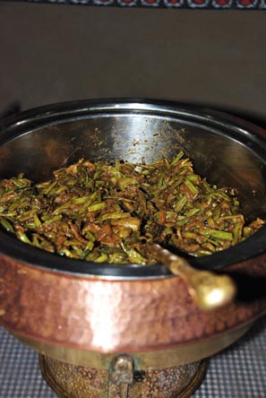 Achar/Pickles, a special condiment perfumed with ginger, garlic and hot chillies, is considered indispensable to a Nepali meal. They may be served as a vegetable dish in its own right or as a condiment and may use either raw or cooked cooked vegetables and may be preserved or prepared fresh.Dal/Lentils, Bhat/Rice, Tarkari/Curried vegetable and a small amount of Achar/Pickle – this is the main staple diet of most Nepalese though festivals call in for more elaborate Nepali meal with Masu/Meat, Macha/Fish and other Nepali Desserts amongst which the most popular is Sikarni made with hung yoghurt/curd mixed with dried fruits. Regional variations in cooking styles and dishes quite obviously exist with the geographical/topographical variations within Nepal as the mountains in the North roll down into Tarai/Plains in the south.