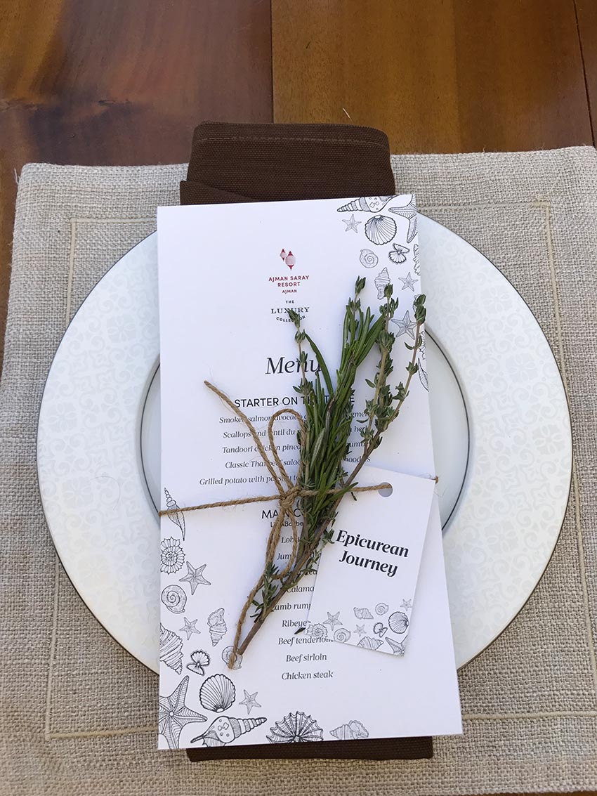 A curated menu at Bab al Bahr terrace in Ajman Saray