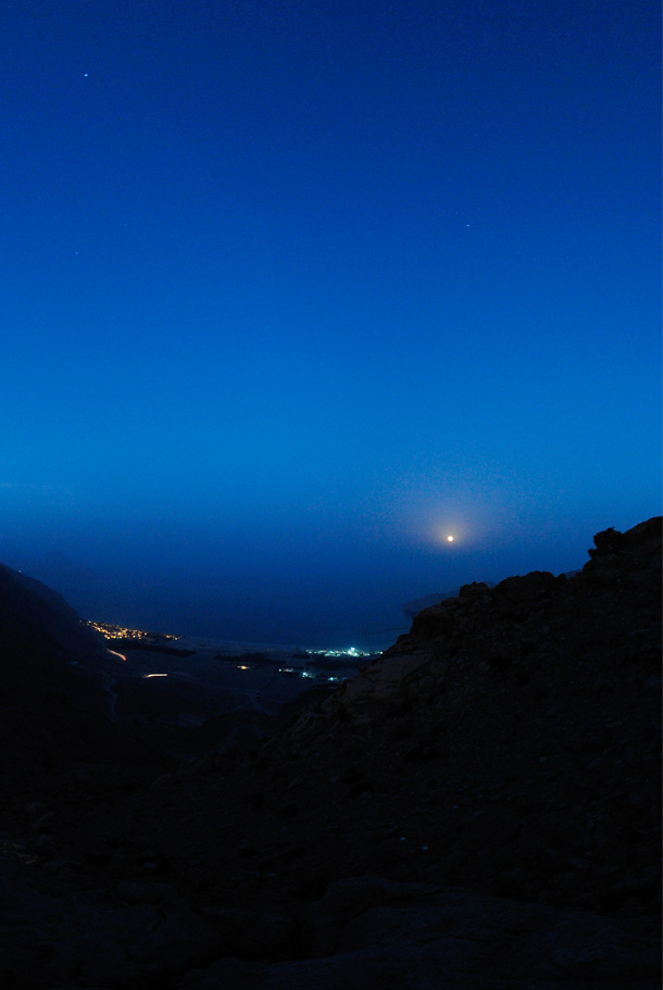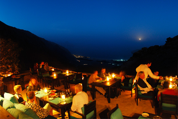 A restaurant perched on a cliff top, 293m above sea level, each dish served like an artwork and accompanied by ‘Let me explain to you what is this dish Sir/Madam’ – this is Sense on the Edge, which has bagged the Middle East Hotel Awards 2012 for the Best Restaurant. An al-fresco dining on the terrace overlooking the Bay of Oman with the lights from the resort and the adjacent Zighy Village glittering like fireflies from below, this is surely the Omani Amalfi Coast! Sadly, the distance and the location doesn’t allow a sudden dropping in for a random meal, though I’ll be tempted to do so, every month on a full moon night, when the Bay waters shine like silver and the mountains are awashed in the moonlight. It was unarguably an evening to remember.